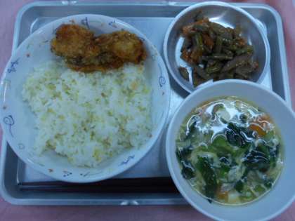 きびごはん 白身魚のソースかけ 五目きんぴら かきたま汁 牛乳