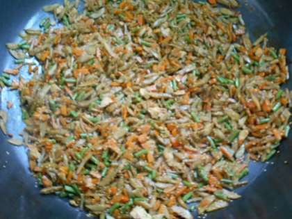 給食では、メルルサーにでんぷんを付けて揚げます。