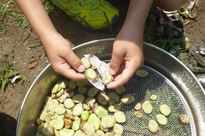 ジャガイモの収穫後に、1年生がそら豆の種も取ってくれました。冬になる前に植える予定です。来年たくさんのそら豆ができることを願っています。