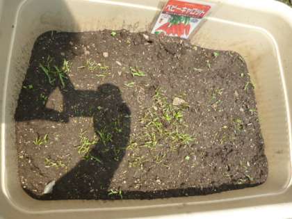 10日ほど前に種をまいたニンジンの芽が出ました!ニンジンの種は他の種と違い光を好むので、あまり深くは埋めないようにしました。土が乾かないように薄いシートをかぶせ、ようやく芽が出てきました。種まきをした人たち、ありがとうございました!育つ様子も観察しながら水やりをしてくださいね!