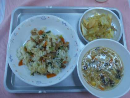 中華風炊き込みご飯はしっかりした味で食べやすく作りました。