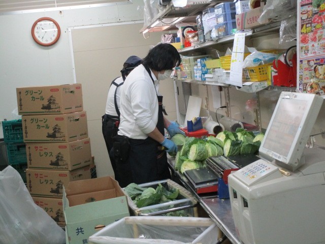 バックヤードの様子、各所冷蔵庫、冷凍庫、精肉、鮮魚、お惣菜、野菜、売り場など様々に見学させていただきました。