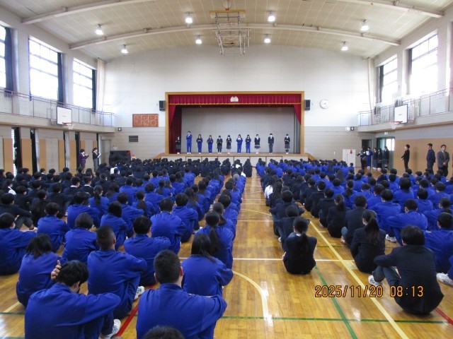 生徒会本部や各専門委員会から、先月の反省や改善策、今月の活動、連絡事項等について、それぞれお話がありました。