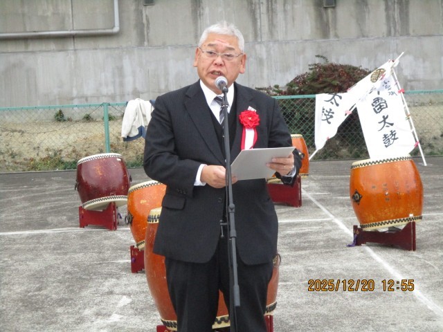 開会の挨拶は、本校吹奏楽部によるファンファーレでスタートし、主催者、初宿市長の挨拶に続き、近隣の小中学校を代表して校長先生も挨拶をされました。