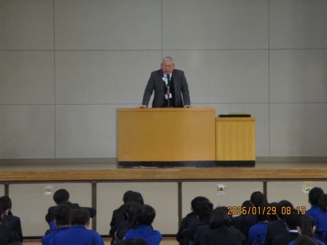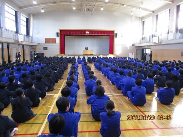 本日(1月29日)は、全校朝礼がありました。