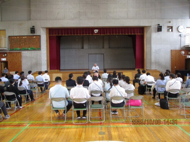 本日(9月10日)の5校時は、生徒会役員選挙の立ち合い演説会でした。10名の候補者が、学校を良くしていくための公約を掲げ、力強く演説していました。(応援演説の生徒も立派でした!)立ち合い演説会終了後は...