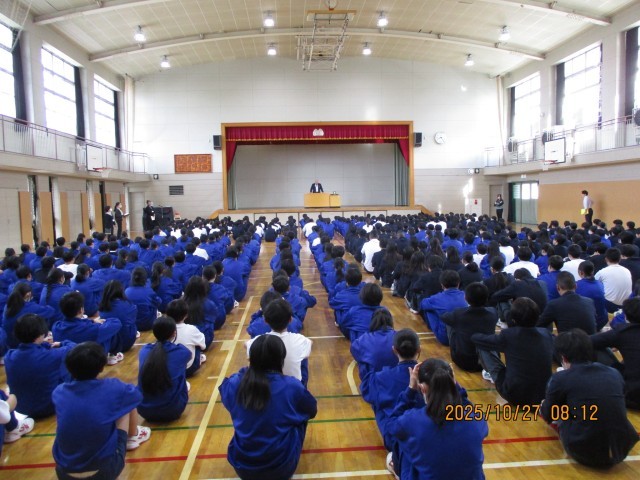 本日(10月27日)は全校朝礼でした。校長先生からは、まず、10月15日(水)に実施された合唱祭についてお話がありました。各学年の学年合唱を中心に感想を語られていました。私(副校長)は、合唱祭当日はほ...