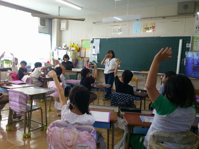 今日はALTの先生が来校の日です。3年生のクラスでは、映像と先生との対話で進めていました。映像で流れる歌で英語の速さ、リズムをつかんでいきます。みんな楽しそうに身体を揺らしながら歌い、そして先生とやりとりをしていました。
