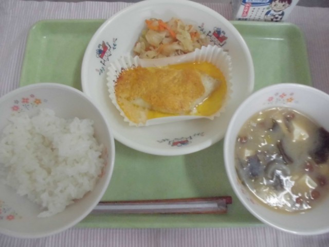 1日 ごはん 夕焼小焼やき 味噌汁 キャベツのごまじゃこ和え 牛乳