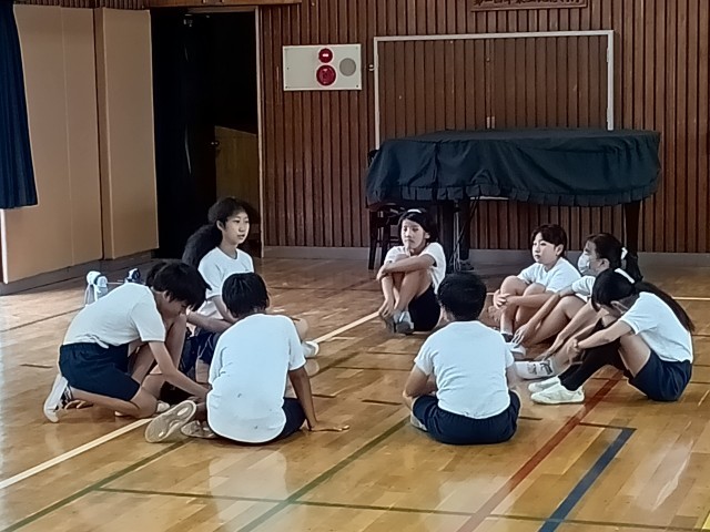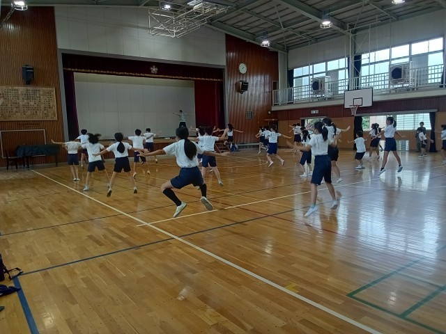 運動会の練習も徐々に熱を帯びています。四年生以上が合同で取り組むソーラン節、縦割り班に分かれて上級生が下級生に動きのポイントを教え、みんなお互いに声を掛け合いながら生き生きと頑張っています。クロームブックの映像も活躍中!