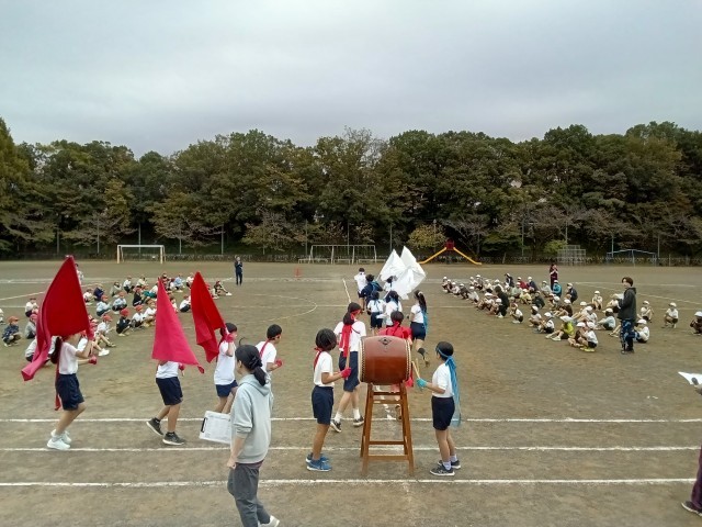 びっくりするような寒い朝になりましたが、雨も上がり、全校練習を行いました。整列、声出し、体操と一年生にとっては初めてのことばかり。上級生のサポートが光ります。応援団は団長さんを中心にキビキビと動いています。本番まで今日しか練習できない全校競技は、みんな気合も入りました。25日、保護者、地域の皆様の参加、お待ちしています!