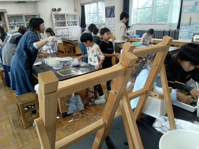 運動会が平日開催となったので、子ども達は午後も授業があります。でも、3年生は特別な授業でした。一学期から育ててきたカイコの繭を使って、糸繰り体験、そして美しいタペストリーを制作したのです。特別ゲストとして、加住町から都内唯一の養蚕農家長田さんにも来校していただき、たくさんの保護者の皆様のお力もお借りして、楽しい活動となりました。素敵な作品は展覧会に展示する予定です。お楽しみに。