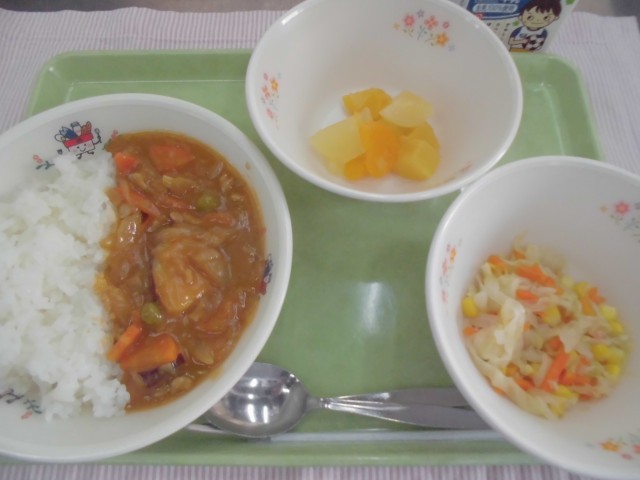 16日 さつまいののカレーライス コールスローサラダ フルーツ缶 牛乳
