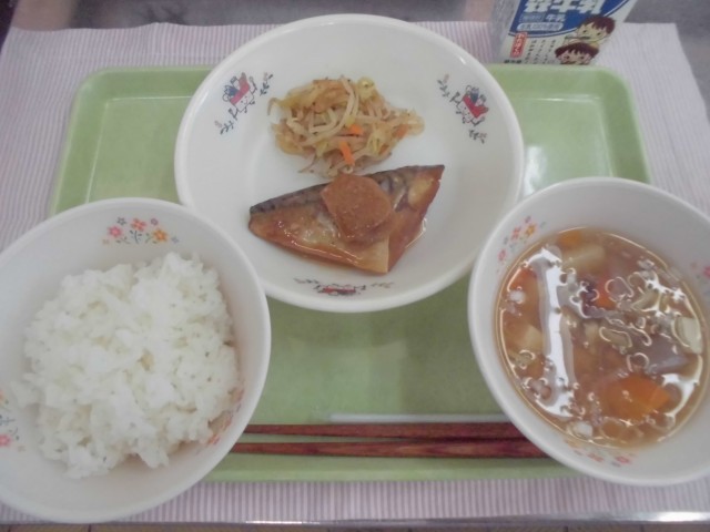 23日 ごはん さばのみそ煮 野菜のおかか和え 吉野汁 牛乳