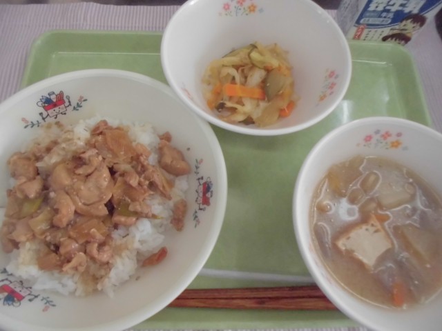 24日 やきとり丼 田舎汁 スタミナ野菜 牛乳