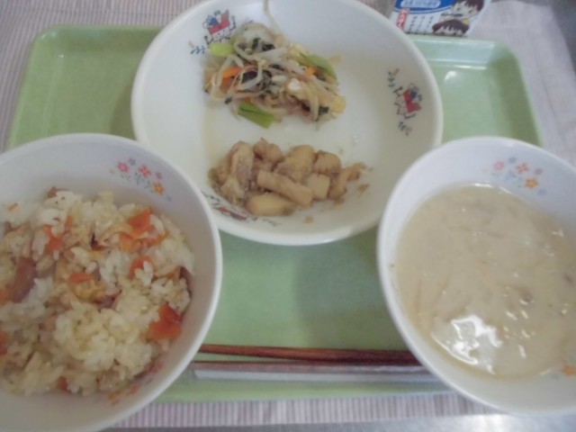 28日 大山おこわ いかの香味炒め 呉汁 彩り和え 牛乳