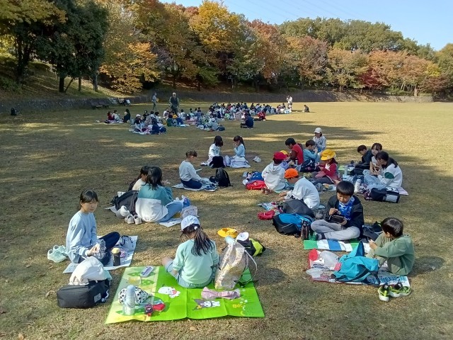 目的地の上柚木公園に着くと、まずはクラス遊び。そして楽しいお弁当タイムの後は、6年生の願いから、まずは全校児童でドロケイ。6年生がオニ役を務め、広い広場を思いっきり走り回りました。後半は縦割り班での工夫したグループ遊びを行い、まだまだ遊び足りない中ですが、帰路につきました。本校の一番の自慢である縦割り班のつながり、最後に下級生から6年生に感謝の思いを伝えると、6年生はなんとも照れくさそうに、嬉しそうに聞いていました。保護者の皆様も、朝早くから準備などありがとうございました。