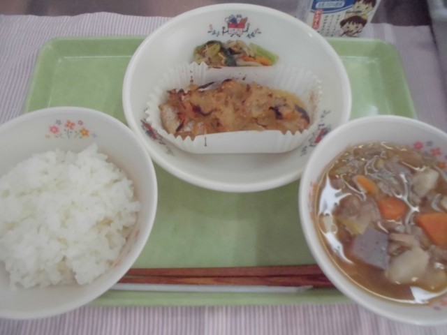 12日 ごはん 鮭のちゃんちゃん焼き けんちん汁 煮びたし 牛乳