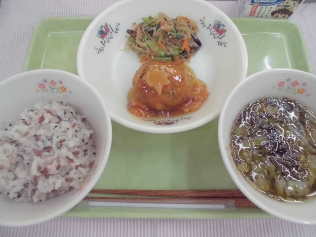 14日 天狗ごはん 高尾揚げもみじあんかけ 山の幸和え 翠靄汁 牛乳 高尾山御膳を実施しました!