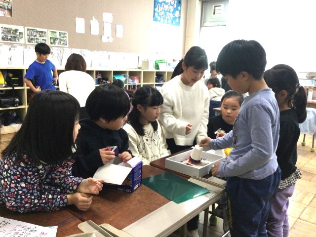 磁石を使った「クレーンゲーム」や、うちわで車を動かす「パタパタランド」など、子供たちが工夫をこらして作ったおもちゃに、1年生も目を輝かせながら夢中になって遊んでいました。