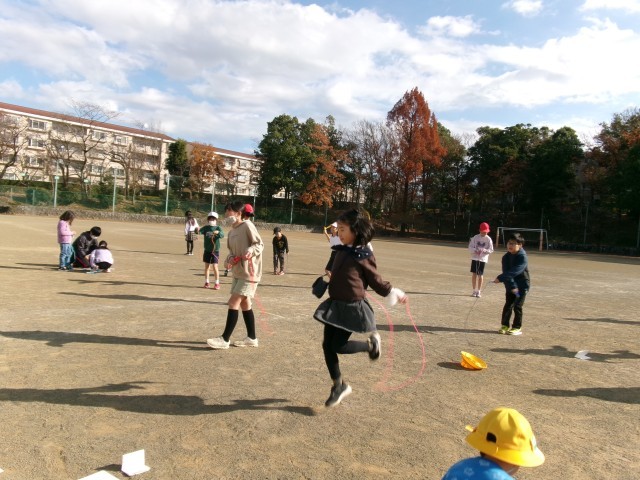 先週から、なわとび週間が始まっています。中休みに縄跳びとスタンプカードを持って校庭に集まってきます。それぞれの子どもが自分の目標を持って取り組んでいました。連続跳び、二重跳び、あや跳びなど、一生懸命に跳んでいました。終わったら6年生からスタンプをもらいます。スタンプカードは世界一周できるカードを作ってくれていて、これが楽しみでみんながんばっています。初冬ならではの冷たい風と青空の下、体力作りに励んでいます。