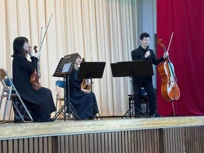 南大沢小学校の体育館がコンサートホールに変身し、優雅な調べが流れました。