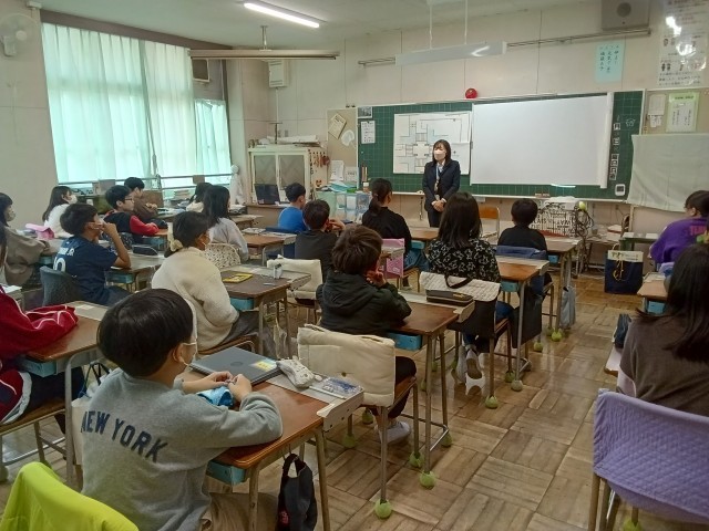 5年生は南大沢警察署の協力をいただき、交通安全教室を実施しました。今回は特に令和8年4月から導入される道路交通法の改正、「自転車の交通反則通告制度」に関連して、自転車の安全な走行について詳しく学ぶことができました。低学年の頃から何度か警察の方の話を聞く機会があったことがしっかりと身になっており、とても詳しく理解している児童もいて感心しました。学んだことを誰かに伝えるとさらに理解が深まります。ぜひ、家族にも説明してください。