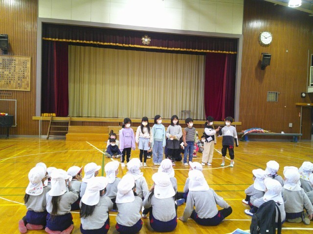 今日はあいにくの雨でしたが、南多摩幼稚園の年長さんと1年生の交流会がありました。体育館にまず集まって、会が始まりました。最初は緊張していた年長さん、1年生でしたが、体育館でゲームを楽しむ中、打ち解けてきました。その後に「校内探検」をしました。1年生が校内を案内するスタンプラリーです。年長さんにしっかりと校内の説明をしてくれていました。年長さんも4月には1年生。小学校の様子を楽しんでくれたようです。南多摩幼稚園のみなさん。雨の中、ありがとうございました。