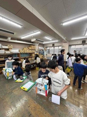 4年生は工作用紙を工夫して使い、ビー玉を転がしたり落としたりして楽しむゲームを作りました。作る工程も楽しいですが、遊ぶための道具は誰かに使ってもらってその価値を発揮します。2年生、3年生を図工室に招待し、自分たちの作品の特徴や工夫したところを説明しながら、下級生におもいっきり楽しんでもらう時間を設けました。遊ぶ側の2年生3年生は、楽しかったポイントや気が付いた工夫をメモして4年生に伝え、作る側、遊ぶ側双方が楽しめる素敵な時間になりました。心配された「壊れてしまう」こともなく、最後の感想の交流では2年生から「残念だったのは、もっとやりたかったのに時間が来てしまったことです」と振り返っていることに、この時間の楽しさが集約されていました。異学年交流の素敵な実践が一つ増えました。