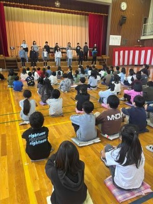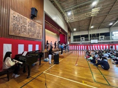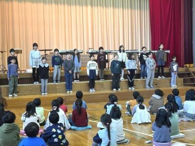今朝は本年度最後の音楽朝会でした。3年生と6年生の演奏。卒業式を控え、式典会場としての体裁が整ってきた体育館の舞台で、二つの学年の児童は緊張しながら頑張りました。3年生のリコーダーの演奏は「メリーさんの羊」の変奏バージョン。真剣な表情で一生懸命さが伝わってきました。6年生は歌声から力強く、合奏では「Paradise Has No Border」をばっちり決めてくれました。肌寒い朝でしたがラテンのエネルギーでみんなの目が輝きました。人を元気にする音楽の力、改めて感じました。