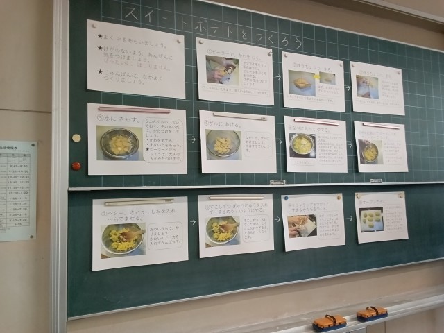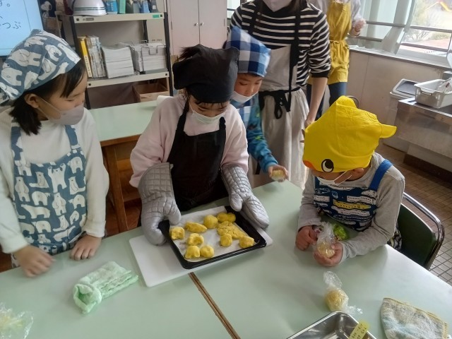 1年生は畑で育てたサツマイモを使ってスイートポテト作りに挑戦しました。皮をむいて、小さく切り分けて、お芋をすりつぶして、好きな形に整形して…。作業工程で子どもたちが参加できるところがたくさんあるのが素敵ですね。甘くて美味しい、素敵な料理が完成しました。お手伝いいただいた沢山の保護者の皆さま、ありがとうございました。ぜひ、ご家庭でも作ってみてください。