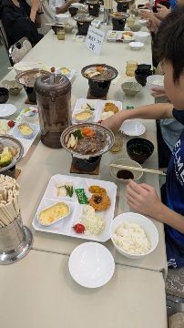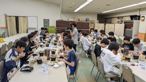 移動教室1日目の夕飯です。男女かかわらず、皆よく食べていました。中にはご飯を何杯もおかわりしていた生徒もいたようです。