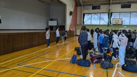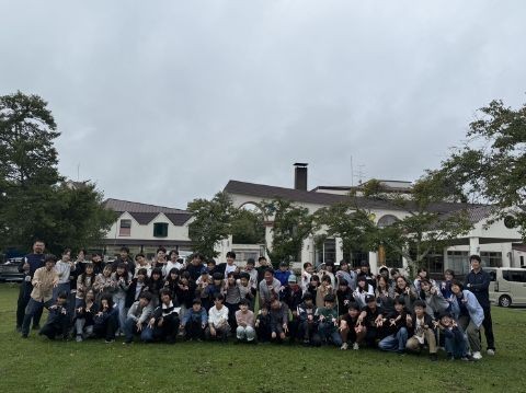 出発前に、クラスごと、学年全員で、集合写真をとりました。