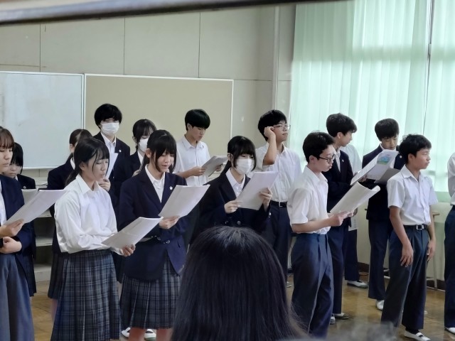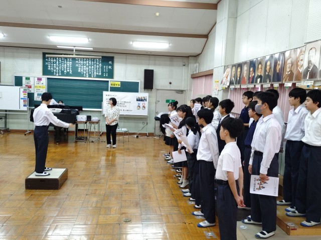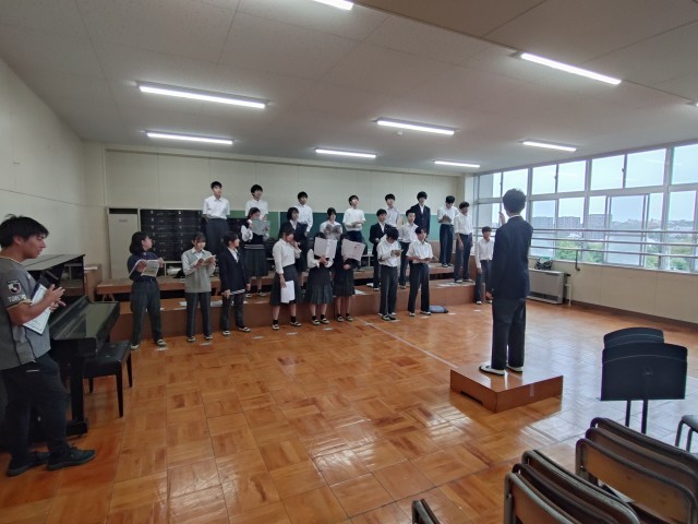 本日より合唱祭に向けての練習が始まりました。各クラスごとに練習場所を教室、特別教室、音楽室、体育館等で割り振られての取組となります。実行委員を中心に一人ひとりが協力し、各クラスの持ち味を活かしたステキな合唱を創り上げていってほしいと思います。