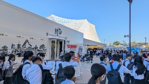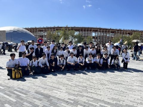 大阪万博会場に到着し、クラス写真を撮影しました。その後、予約ができてる関西パビリオンにみんなで入場して観覧しました。