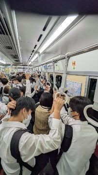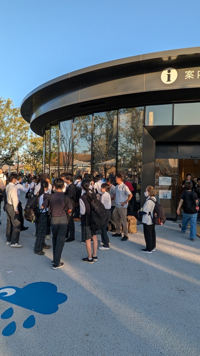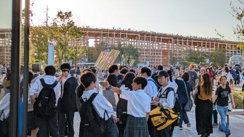 万博会場で、無事班行動を終え、全班時間通りに集合しました。現在、奈良に向かい電車で移動中です。