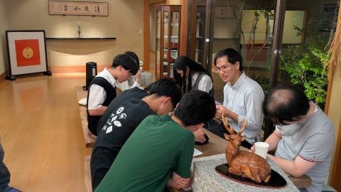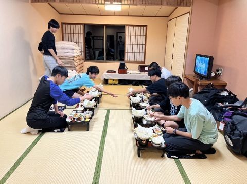 一泊目の宿、むさし野で、夕飯を部屋食でいただきました。若草山の目の前にある、とてもきれいな宿で、3年生の生徒達はみんな、旅の疲れを癒す時を過ごしています。