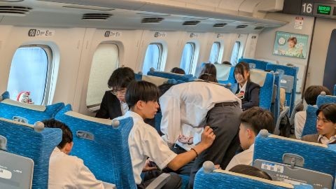 13時30分に班行動を終了して、京都駅に集合しました。その後、解散式を行い、看護士さん、カメラマンさん、添乗員さんに御礼をいい、今回のまとめの言葉を副実行委員長が、話しました。現在、新幹線に乗車し、東京方面への帰路に入っています。