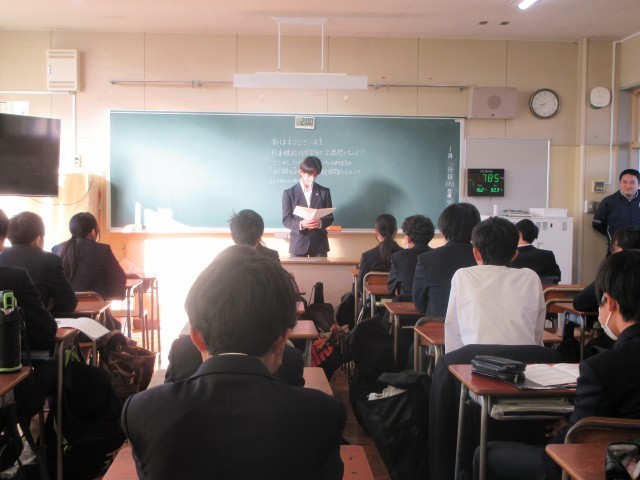 今週は、1、2年生の各クラスごとに朝の時間を活用して、国語の授業で考えた3年生の弁論発表を聴く機会がありました。