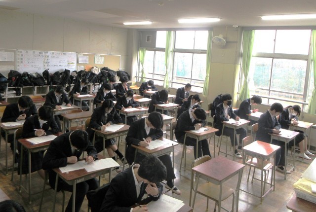 今年度、最後の定期考査である学年末考査期間中で、本日は2日目、理科と国語と保健体育に挑んでいます。みな集中して取り組んでいます。なお、明日が最終日で、給食もあります。