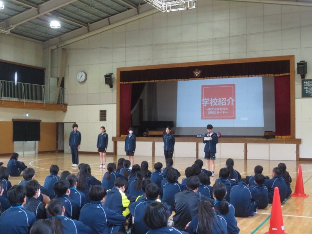 新入生に向けて南大沢中学校の生徒会活動や部活動の魅力について2,3年の先輩達から紹介がありました。