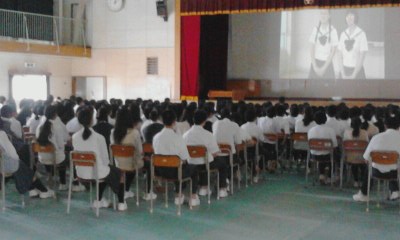 今日の5時間目はセーフティ教室でした。南大沢警察署からお二人いらっしゃって、ビデオ上映と講話をしてくださいました。セーフティ教室は都内の全ての公立小・中学校、都立学校で毎年行われているものです。非行・犯罪被害防止が目的です。今日は万引きの防止とインターネット犯罪について学びました。警察の方から生徒のみなさんの見学態度の良さを大変ほめられました。講演後には、保護者・地域の方・教師・警察の方による意見交換会を行いました。参加者が少なかったのが残念です。