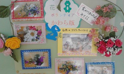 PTA花壇ボランティアのかわらばん。昇降口に掲示しています。