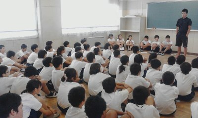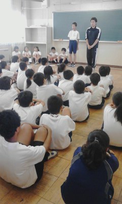 今日の5時間目は、どの学年も1学期のまとめの学年集会がありました。課題と対策方法を考えました。写真は1年生の集会の様子です。