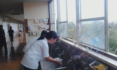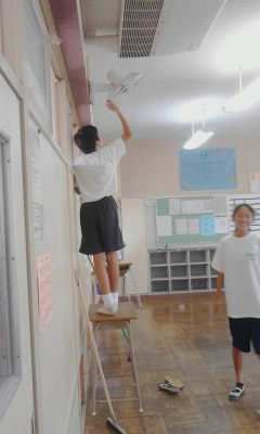 みんな真面目に取り組んでいます。扇風機もきれいにします。