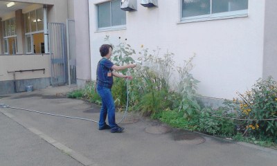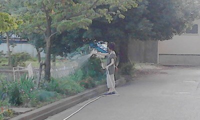 この画像は今日の17:00ころです。こんな時間に水やりに来てくださっています。おかげで毎日のようにきれいな花が見られるのです。花壇ボランティアの皆さん ありがとうございます。