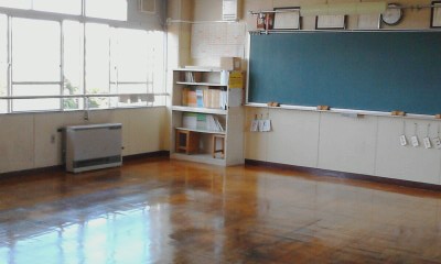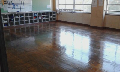 教室の床はピカピカです。