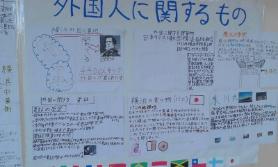 1年生は9月20日(金)に横浜へ校外学習に出かけます。1年生の廊下には事前学習のポスターが貼られています。