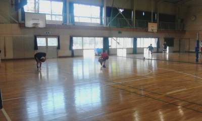 今日はとても暑い、猛暑日です。しかし、生徒は元気です。先ず体育館の部活動から。バスケットボール部。