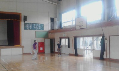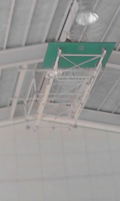 体育館のバスケットボールのボードが新しくなります。9月の初旬までの校時です。可動のボード(残念ながら手動式なのは変わりませんが)はクリアのボードになる予定です。